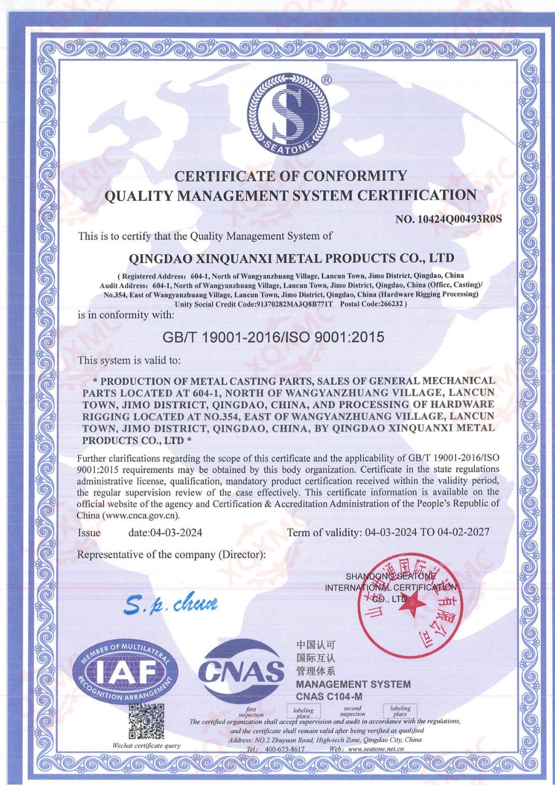 Qingdao Xinquanxi Metal Products Co.,Ltd. is a professional forging and casting parts manufacturer with more than 20 years experience with good quality and competitive price.